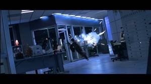 The mythical scene of the gun battle takes place here with destruction of glass partition walls.
