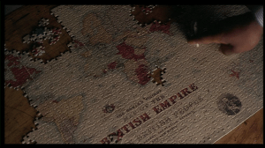 Au nom du père est un film irlando-britannique de Jim Sheridan, adapté du livre autobiographique Proved Innocent de Gerry Conlon, sorti en France en 1994. En 1975, Gerry Conlon, jeune délinquant originaire de Belfast, est arrêté par la police londonienne qui l’accuse d’être l’instigateur des attentats terroristes à Guildford pour le compte de l’IRA. Sous la pression des policiers, Gerry signe des aveux fabriqués de toutes pièces et est condamné, ainsi que son père pour complicité, à de nombreuses années de prison. De nombreuses scènes se déroulent en prison. En particulier, une scène présente des détenus qui montrent à Gerry un puzzle d’une carte de l’empire britannique.