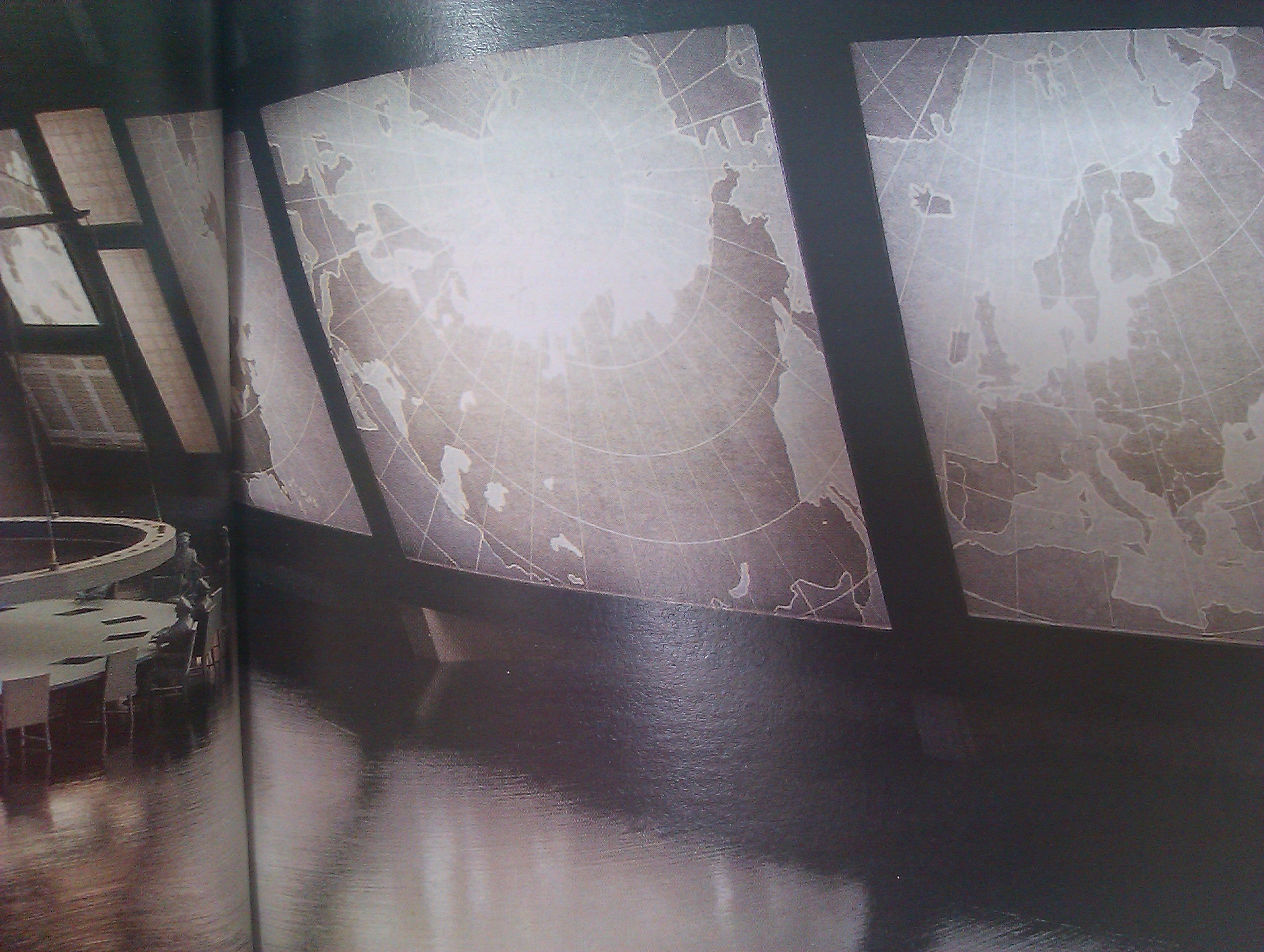 Cette pièce n’a rien à voir avec la Map Room ou Salle des Cartes de la Maison Blanche qui, elle, reste une « salle historique » où trônent quelques cartes papier, notamment celles de la National Geographic Society, qui paraissent issues d’un autre temps.