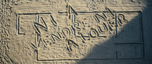 Among different protagonists, two young women walk around with the classic hiker’s equipment (backpack). They spend a night on the beach and draw a plan of a house on the sand. Even the dog has his own room. They resumed their journey in the morning after having written on their « home » property what will become the title to the movie: Neither for sale or rent.