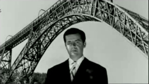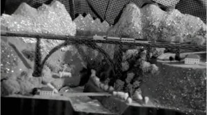 Je trouve saisissante l’inversion des deux plans du viaduc: minuscule sur le gâteau de mariage et imposant au-dessus du couple de personnages avec le train qui passe sur le pont dans les deux cas … Décidément, il faut voir L’Enfer.