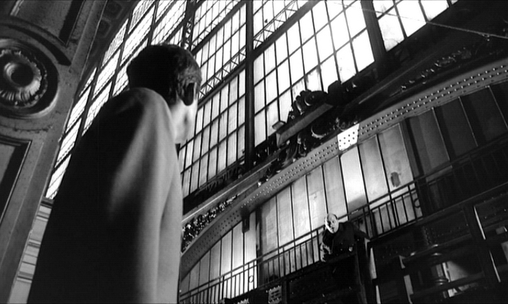 Tout au long du film, Orson Welles introduit des plans dont les décors montrent des espaces intérieurs très angoissants, témoignant d’une bureaucratie totalitaire face à laquelle K tente en vain de comprendre ce qui lui arrive et ce dont il est accusé.