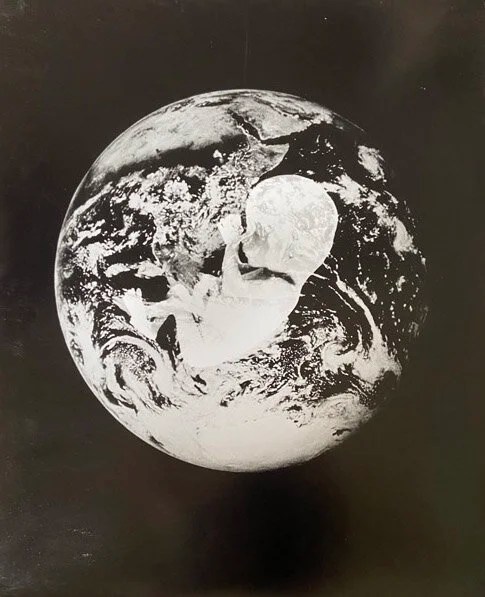 On touche là à la dimension géo(spatiale) du film. La Terre que retrouve Stone semble elle aussi rajeunie et c’est à une double (re)naissance à la vie de la Femme et de la Terre qu’on assiste. Ce lien à la fois organique et symbolique entre la mère ayant perdu son enfant et la Terre nourricière est illustrée à plusieurs moments dans la mise en scène. Par exemple la sphéricité du casque de l’ astronaute renvoie au globe terrestre qui s’y reflète. Une des affiches du film illustre très explicitement la rupture du lien ombilical entre l’homme et la planète. Cette mise en scène du globe terrestre évoque immanquablement les analyses de Denis Cosgrove dans son livre Apollo’s eye: a cartographic genealogy of the earth in the western imagination, où il retrace une généalogie du globe terrestre comme objet poétique et imaginaire. Costgrove cite d’ailleurs ce qui lui paraît être une des représentations les plus saisissantes du globe, le photomontage Earth 9 de Peter Kennard, dans lequel l’artiste britannique superpose à une des premières images d’Apollo 17, appelée Whole Earth car elle est la première image de la terre vue dans son entier depuis l’espace, une autre image majeure des années 70, celle de la première image d’un fœtus in utero. Remarquable collage dont le film semble constituer comme un déploiement narratif.