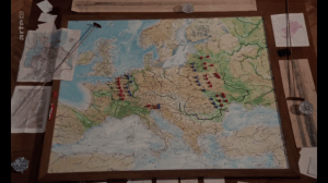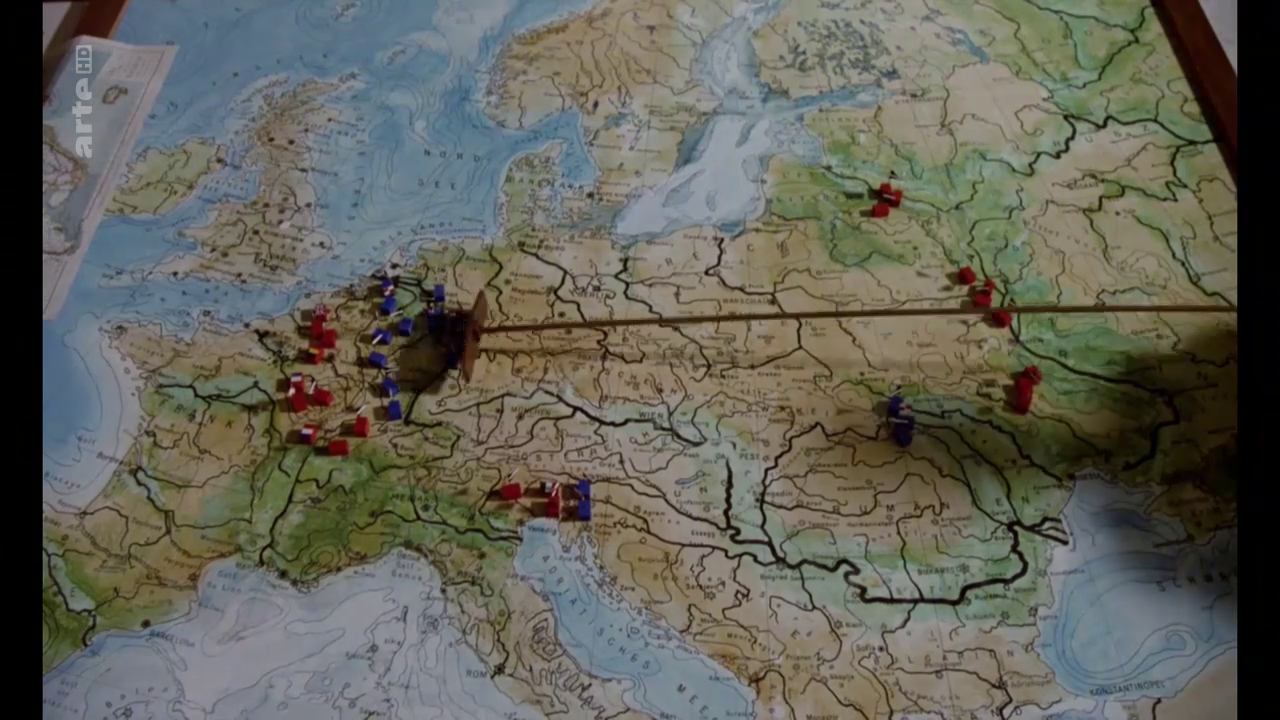 On découvre que cette carte de l’Europe se trouve dans une salle de l’Etat-Major allemand dont on aperçoit des officiers supérieurs en discussion.