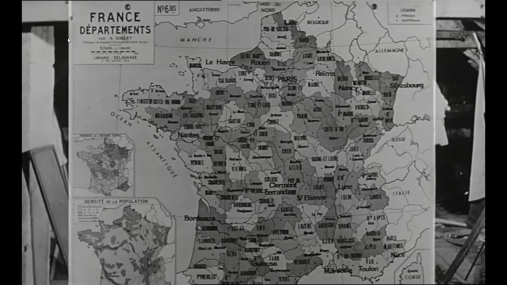 The map imagined by Jules Romains thus has its cinematographic transcription, in a unique style that could be described as « Administrative Geopsychedelia ». This monument of animated cartography has remained unjustly unrecognized, in contrast to the theme song created on commission for the film by Georges Brassens.