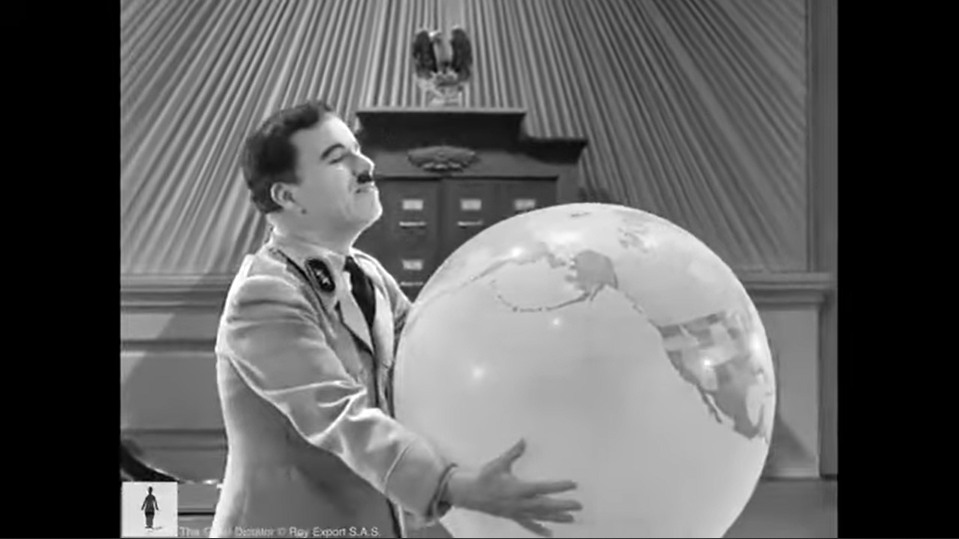 The most famous globe in cinema can be found in Charlie Chaplin’s 1940 film The Great Dictator. Adenoid Hynkel dreams of becoming dictator of the world while jongling with a globe that ends up exploding on his face. The film was a huge success and made cinema history. Its critical reception was more divided, both upon its release and just after the war, and even more so recently. While the dance with the globe is one of the film’s most famous sequences, it has been analyzed less for itself than as a symbol of the message associated with the film.