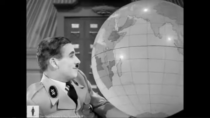 Le plus fameux globe terrestre du cinéma se trouve dans Le Dictateur, film réalisé par Charlie Chaplin en 1940. Adenoid Hynkel rêve de devenir dictateur du monde tout en jonglant avec un globe qui finit par lui exploser à la figure. Le film a été un immense succès et a marqué l’histoire du cinéma. Son accueil critique a été plus partagé, dès sa sortie ou juste après la guerre et même plus récemment. Si la danse avec le globe est une des séquences les plus connues du film, elle a été moins analysée pour elle-même que comme symbole du message prêté au film.
