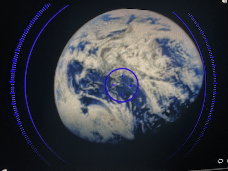 Si les formes sphériques sont omniprésentes (des hublots du vaisseau aux dômes des serres, des aliments artificiels aux boules de billard, de la table de jeu aux ampoules sources de lumières artificielles, des écussons des combinaisons d’astronautes au soleil éblouissant, etc.), le globe terrestre n’apparaît qu’une seule fois au milieu du film. Alors que le vaisseau se rapproche dangereusement de Saturne, Freeman, les yeux rivés sur sa lunette astronomique, scrute la galaxie et trouve la planète Terre. Le visuel paraît approximatif et, de fait, ce n’est que quelques mois après la sortie du film que la Blue Marble, célèbre cliché de la Terre vue de l’espace, sera pris lors de la mission Apollo 17.
