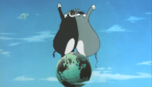 Le dessin animé « Kingsize Canary » de Tex Avery illustre avec humour des personnages qui grandissent jusqu’à écraser le globe terrestre/\Tex Avery’s cartoon “Kingsize Canary” humorously depicts characters who grow so large that they crush the globe.